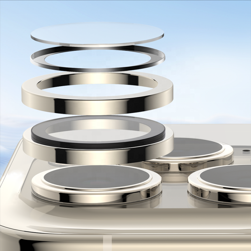 This tempered glass camera lens protector is made of high-quality Grade AAA material, offering 100% transparency for HD clarity. It features an ultra-thin design with 0.33mm thickness and a 9D hardness rating, ensuring full coverage protection against scratches, shocks, and fingerprints while maintaining anti-glare and waterproof properties.